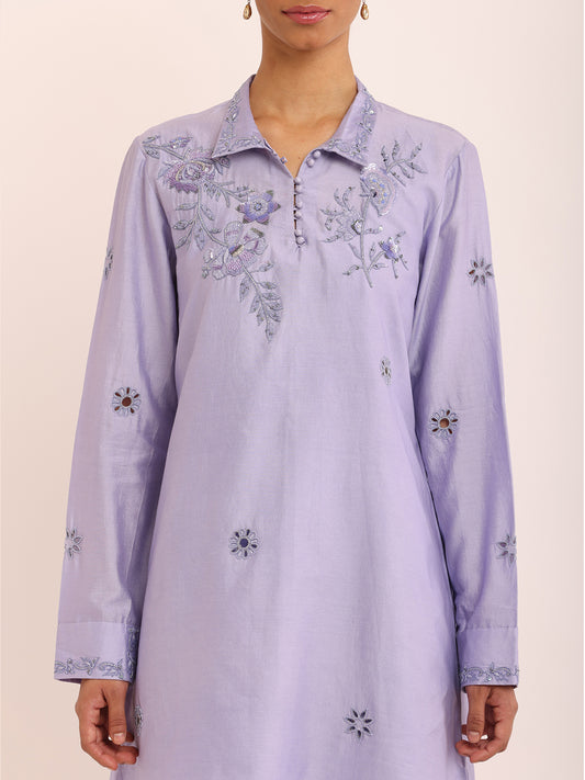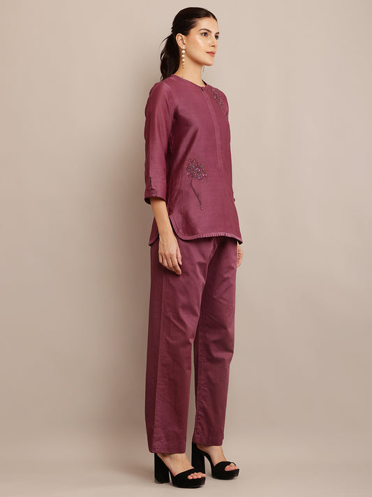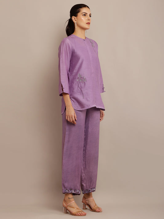 FLORAL LILAC EMB TOP & STRAIGHT LILAC PANT