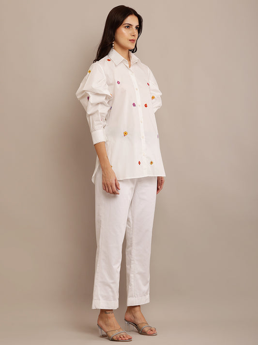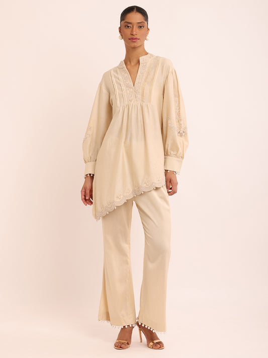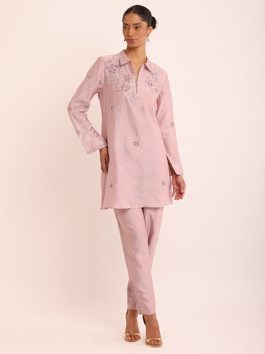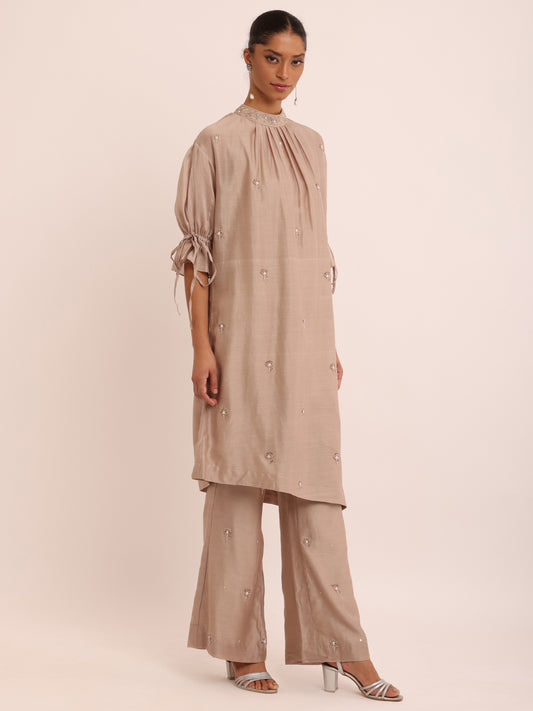 ROUND NECK KURTA & FLOWER EMB PANTS