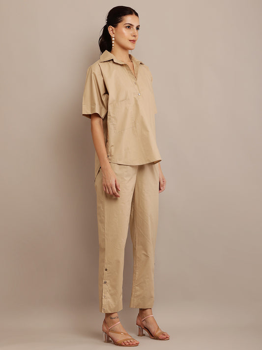 KAFT KHAKI TOP & KHAKHI BUTTON PANTS