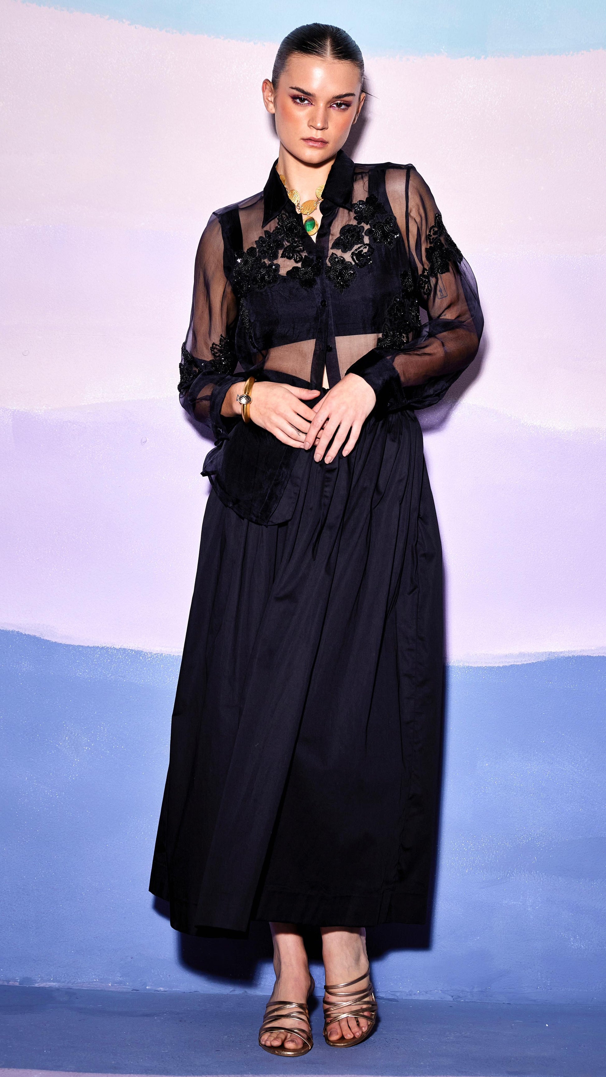 BLACK FLORAL SHIRT & SKIRT– AW69